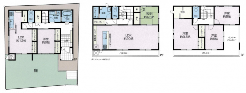 □3F 9.5帖洋室+WIC+6帖洋室×2